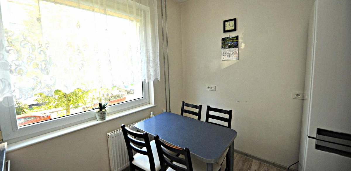 Shared Kitchen: A sunny room with all necessary appliances, kitchen utensils, and a dining table.