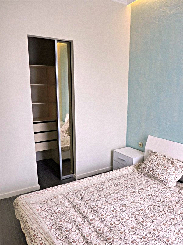 Bedroom: A cozy room with a double bed and a wardrobe with a mirror.